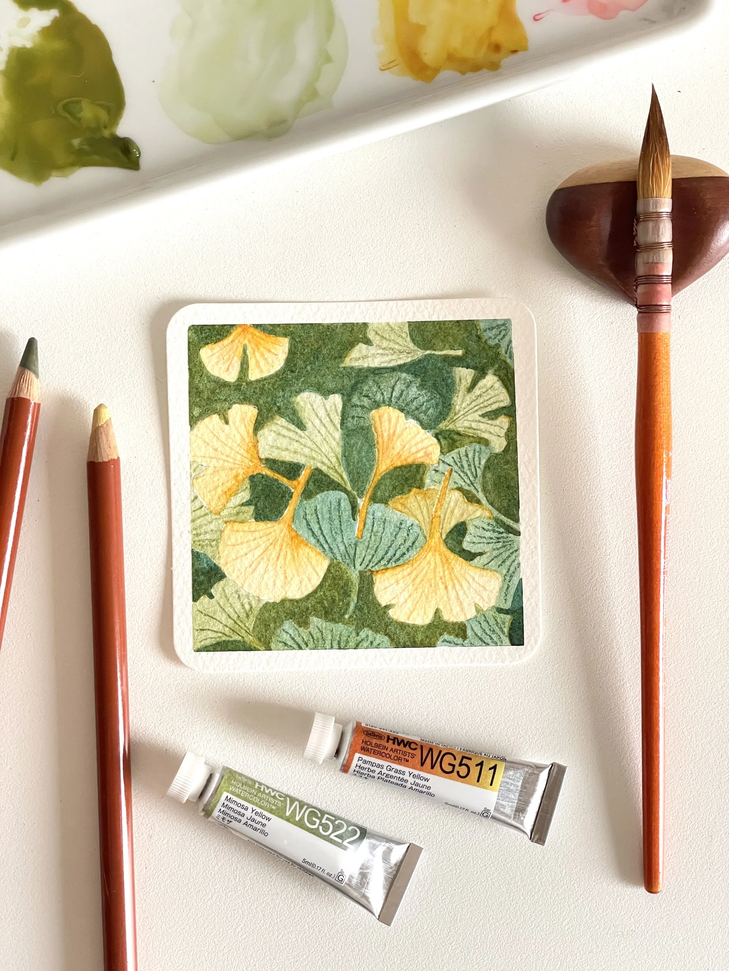 透過日本顏彩(或透明水彩)與水流動的練習,進行放鬆、療癒、沈浸色彩美感的正念繪畫。